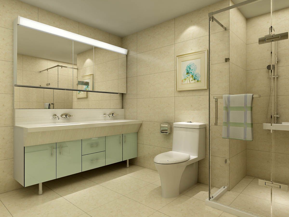 具體做法:衛浴間里裝上兩面甚至三面墻上裝鏡子,其反光效果使空間通透敞亮。