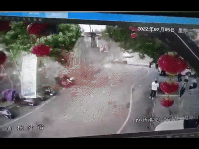 網傳的一段監控視頻顯示,7月6日清晨5時28分,一棟建筑的二到三層位置發生了爆炸,建筑的中間位置炸出來一個很大的豁口。從其他現場視頻中可以看到,發生事故的建筑名為“利騰公寓”,已有多輛救護車及消防車趕到現場救援。