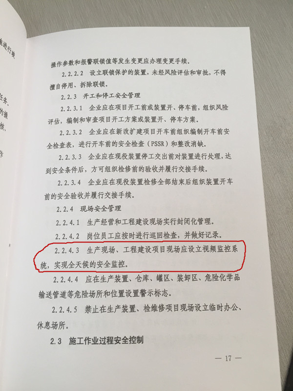 中國石油化工集團公司安全管理手冊,2015年11月30日發行。整本書中提到的視頻監控就有3處,分別如下: