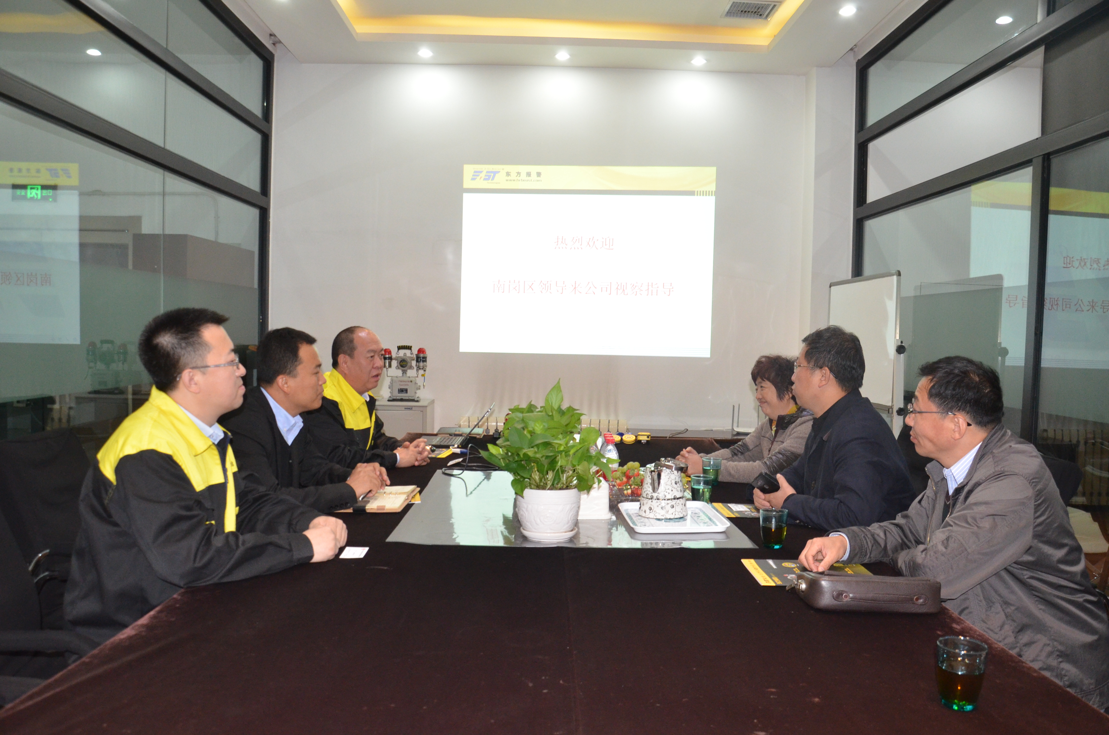 2016年10月11日,哈爾濱市南崗區(qū)副區(qū)長宋博巖協(xié)南崗區(qū)工業(yè)信息商務局局長李艷、南崗區(qū)工業(yè)信息商務局書記張鈞光等委辦局領導一行4人來到哈爾濱東方報警設備開發(fā)有限公司(以下簡稱“東方報警”)就南崗區(qū)政府政策進行解讀,同時調(diào)研企業(yè)需求。東方報警董事長李宣南、總經(jīng)理毛飛、技術總監(jiān)王偉剛等參與了接待工作。