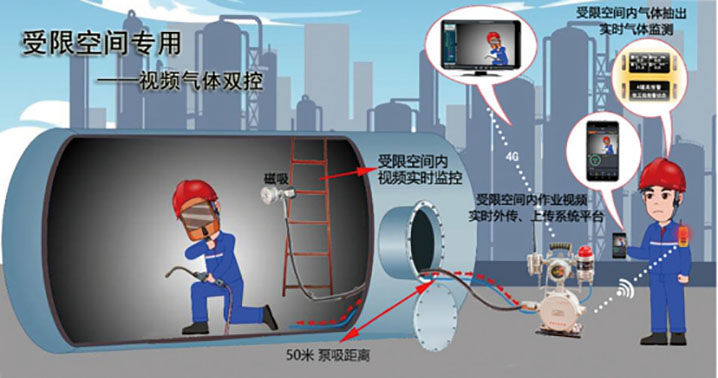 多年的受限空間事故中核心的兩個問題是:有害氣體如何阻止進(jìn)入和進(jìn)入后的氣體檢測預(yù)警。氣體檢測作為有害氣體進(jìn)入受限空間后的最后一道防線,起到了至關(guān)重要的作用,原有的檢測手段無法有效的解決這個問題,以及無法對受限空間內(nèi)的作業(yè)情況進(jìn)行實時的視頻監(jiān)控。