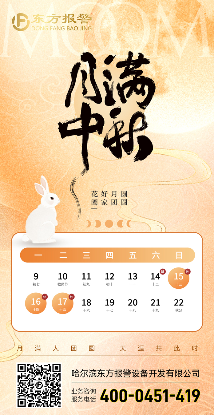 值此中秋佳節(jié)來臨之際,哈爾濱東方報(bào)警設(shè)備開發(fā)有限公司全體員工,
